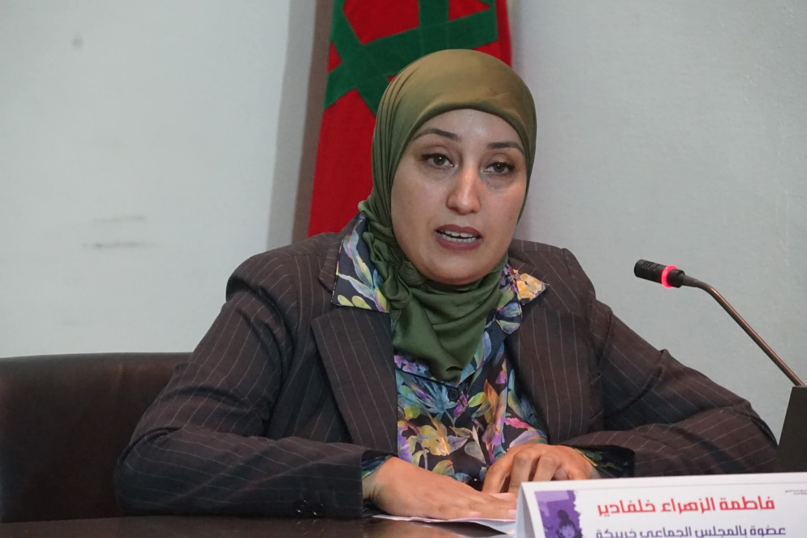 أما مداخلة الأستاذة راضية بركات رئيسة هيئة المساواة وتكافؤ الفرص لدى جماعة خريبكة: حيث اعتبرت أن المتتبع لأوضاع المغرب أصبح يلاحظ التغيرات في العديد من المناحي الاقتصادية والاجتماعية والسياسية حيث وفر العديد من القوانين التشريعية من أجل مشاركة المرأة منذ دستور 2011 وقامت بالتعريف بهيئة المساواة وتكافؤ الفرص والمتمثلة في المساواة بين الجنسين وممارسة تتبع السياسات العمومية المحلية ليس فقط زمن الانتخابات أو بشكل موسمي. بناء على القانون 08/17 الخاص بالجماعات، وهي هيأة تخص المجتمع المدني وهي صلة وصل بين المنتخبين والمواطنين من خلال مهامها الاستشارية والعمل على تقديم استشارات وتوصيات تمثل العدالة بين الجنسين وتدرس الشأن العام مع تنظيم دورات تكوينية للمنتخبات قصد تكوينهم وتفتح أفاقا واسعة بينهم وتدافع على النوع الاجتماعي وتحقيق المساواة بين الجنسين الرجال والنساء معا، ناهيك عن تغيير العقليات في الفضاء العمومي وتغيير الصورة النمطية للمرأة مع ضرورة التمكين الاقتصادي والعمل على الرفع من تمثيليات النساء وهي رافعة حقيقية نحو توعية شاملة، مع تفعيل الأدوار الحقيقية لتكريس المدرسة المواطنة.