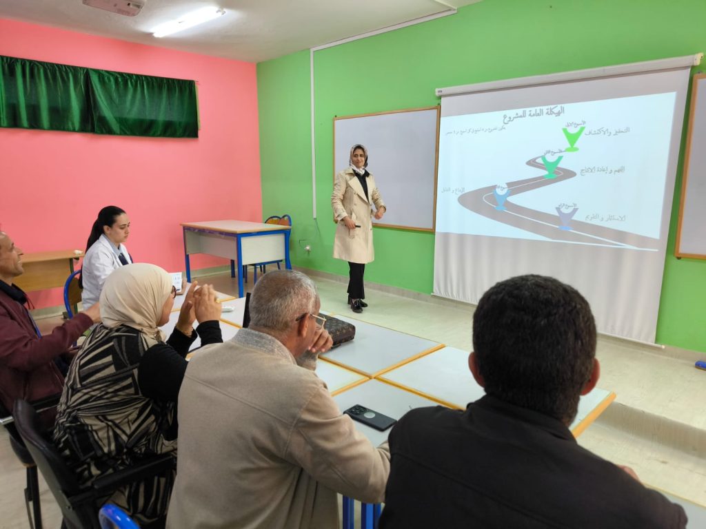 وفي هذا السياق، قدمت المشرفة على المشروع الأستاذة بشرى حلومي عرضًا تأطيريًا مفصلًا، استعرضت من خلاله أهداف المشروع واستراتيجيته الرامية إلى ترسيخ ثقافة القراءة لدى المتعلمين، وتنمية مهاراتهم اللغوية والتعبيرية، مع اعتماد مقاربات تربوية حديثة تشجع على الإبداع والتفاعل داخل الفضاء المدرسي.
