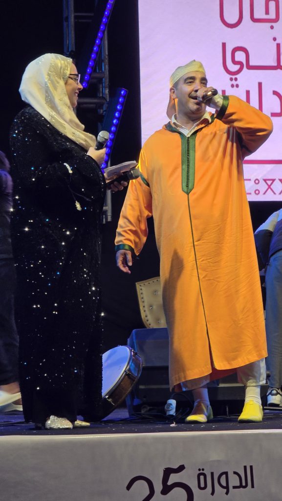 الحضور المحلي كان ممثلاً بقوة من خلال مجموعة عبيدات الرما الزلاقة، التي أبدعت في تقديم عرض متقن تميز بدقة الإيقاع والتناغم بين “الطعريجة” و”البندير”، مؤكدة مكانة خريبكة كإحدى الحواضن الأساسية لهذا الفن الشعبي.